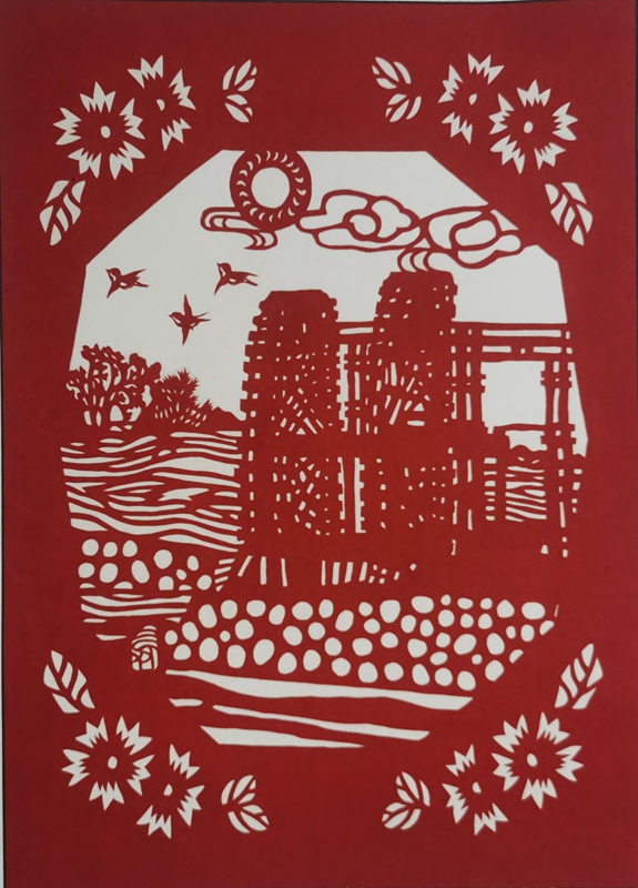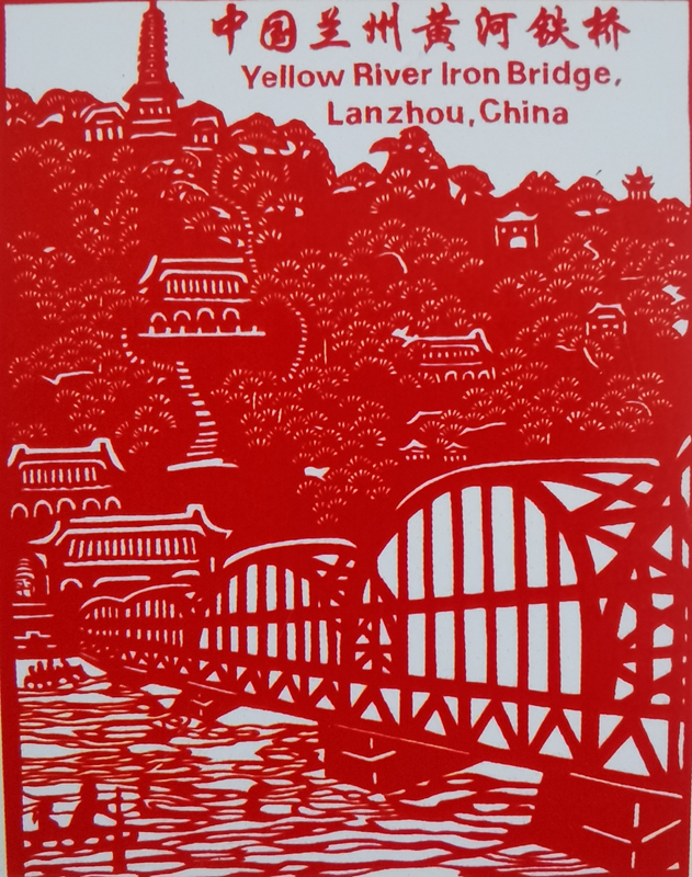 葉長(zhǎng)友剪紙《黃河水車》《蘭州黃河鐵橋》