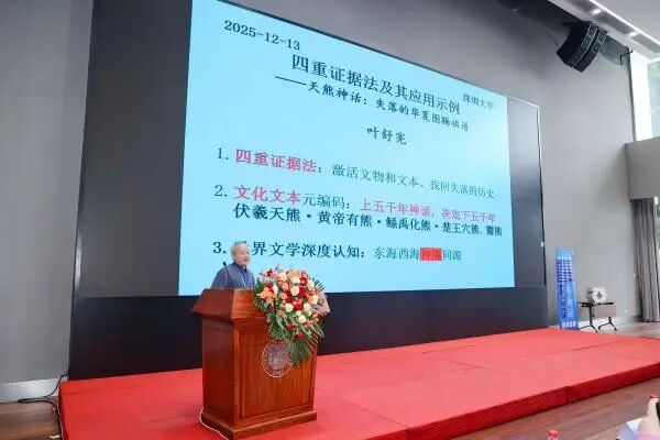 2025年12月13日,在深圳大學(xué)召開的第九屆中國學(xué)術(shù)評(píng)價(jià)論壇上,上海交通大學(xué)文科資深教授葉舒憲提出的“四重證據(jù)法”入選中國哲學(xué)社會(huì)科學(xué)10個(gè)原創(chuàng)研究方法(征求意見中)。“四重證據(jù)法”主要涉及歷史學(xué)、語言文學(xué)、社會(huì)學(xué)等學(xué)科,為人文學(xué)科提供了一套突破性的方法論體系,成功推動(dòng)了跨學(xué)科融合,為構(gòu)建中國自主知識(shí)體系提供了重要研究方法,充分體現(xiàn)了上海交通大學(xué)人文社科“立足傳統(tǒng)、面向未來”的學(xué)術(shù)追求,彰顯了上海交通大學(xué)新文科建設(shè)持續(xù)發(fā)力、人文學(xué)院文脈傳承和繁榮發(fā)展的卓越成效。