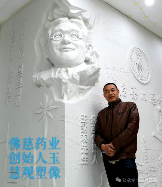 2020年所作,巧妙融圓雕與浮雕于一體,在轉角處營造頭像破壁而出的視覺詩意。分體制作,嚴絲合縫,最終以真石漆噴砂成色,莊重中見靈動,至今仍是馬先生時常駐足回望的滿意之作。