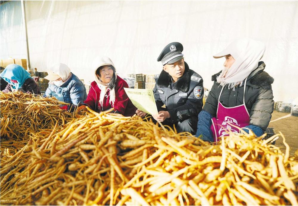 民警向企業(yè)員工宣傳防騙知識(shí)。連日來,山丹縣公安局霍城派出所組織民輔警走進(jìn)轄區(qū)企業(yè),開展集中大走訪、隱患大排查、安全大宣教等活動(dòng)。新甘肅·甘肅法治報(bào)通訊員 尚婧 攝