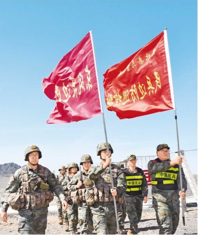 肅北縣馬鬃山鎮(zhèn)民兵邊防巡控排和邊防部隊共同巡邏邊境(2025年9月19日拍攝)。