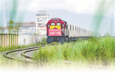 8月23日,前往老撾萬(wàn)象的國(guó)際貨物列車駛出中老鐵路中國(guó)玉溪研和站。當(dāng)日,中老鐵路國(guó)際貨物列車(玉溪—萬(wàn)象)實(shí)現(xiàn)雙向開行。新華社記者 陳欣波 攝