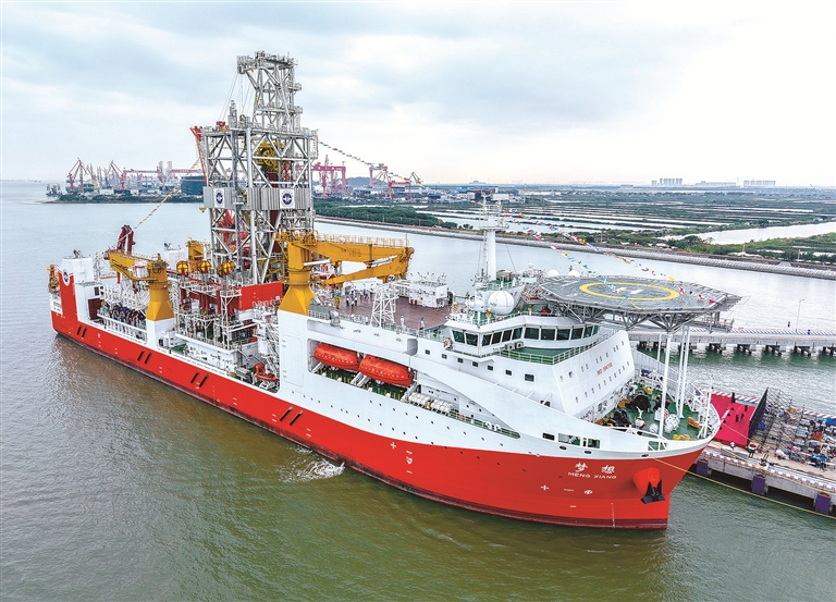 “十四五”時期,我國持續(xù)加強關鍵核心技術攻關和成果應用,加快高端裝備、先進制造等領域關鍵技術攻關,推動傳統(tǒng)產(chǎn)業(yè)向高端化、智能化、綠色化轉型。圖為擁有最大11000米的鉆深能力、我國自主設計建造的首艘大洋鉆探船“夢想”號,該船于“十四五”時期正式入列(資料圖片)。新華社記者 劉大偉 攝