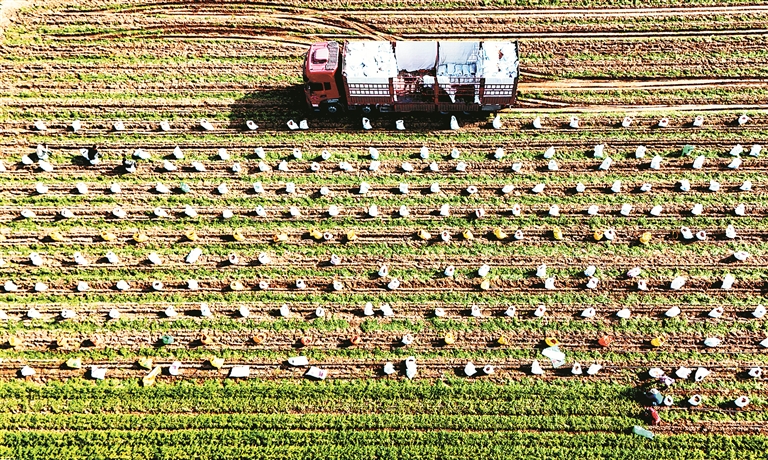 圖③:近日,河南省尉氏縣張市鎮(zhèn)張市村特色種植合作社的員工在種植園采收。新華社發(fā)(李新義 攝)