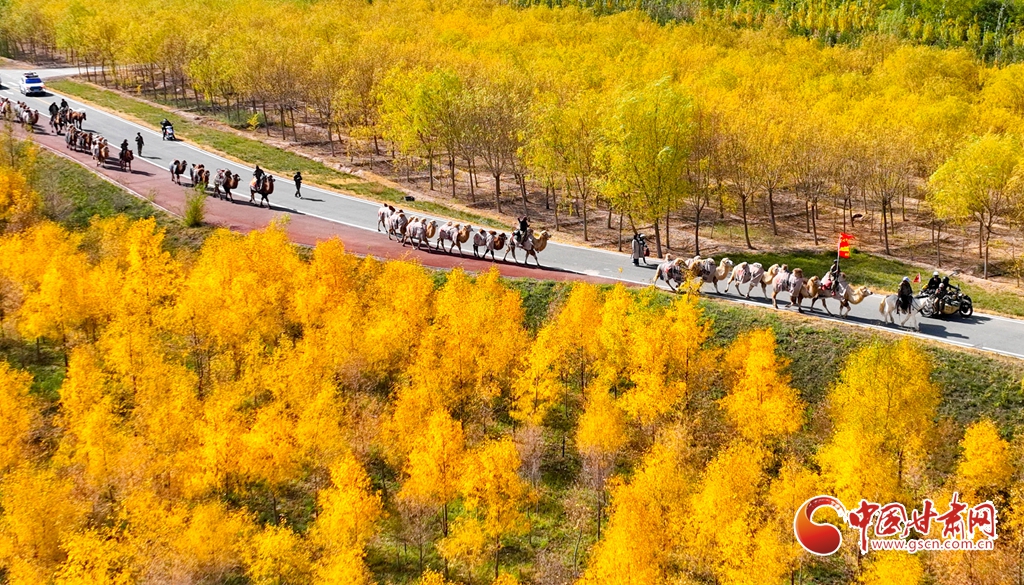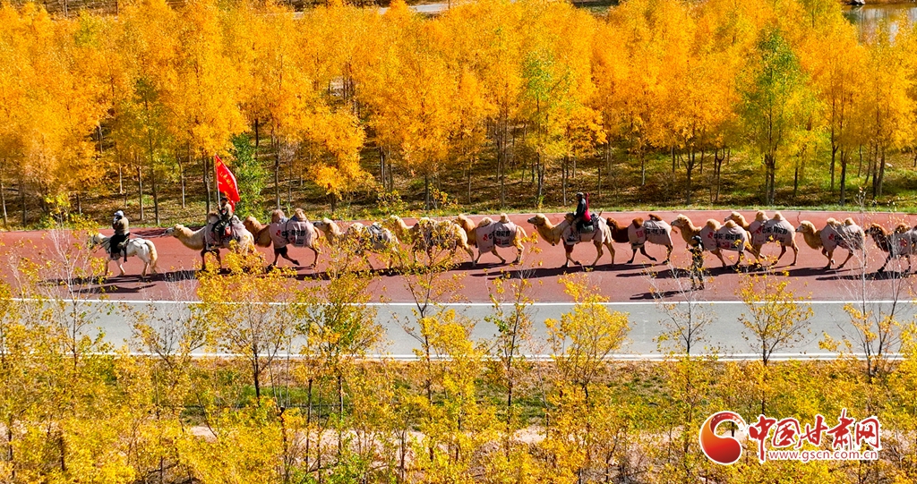 金秋十月,張掖市甘州區(qū)黑河林場(chǎng)萬(wàn)畝胡楊林迎來(lái)流金季節(jié)。10月15日,一支駝隊(duì)行進(jìn)其間,領(lǐng)略這最美的時(shí)光。這片昔日亂石林立、滿(mǎn)目瘡痍的黑河亂石灘,如今已成為6萬(wàn)畝的城市森林,游人、駝隊(duì)行進(jìn)其中,與金色林海共同構(gòu)成了一幅動(dòng)人的生態(tài)畫(huà)卷。
