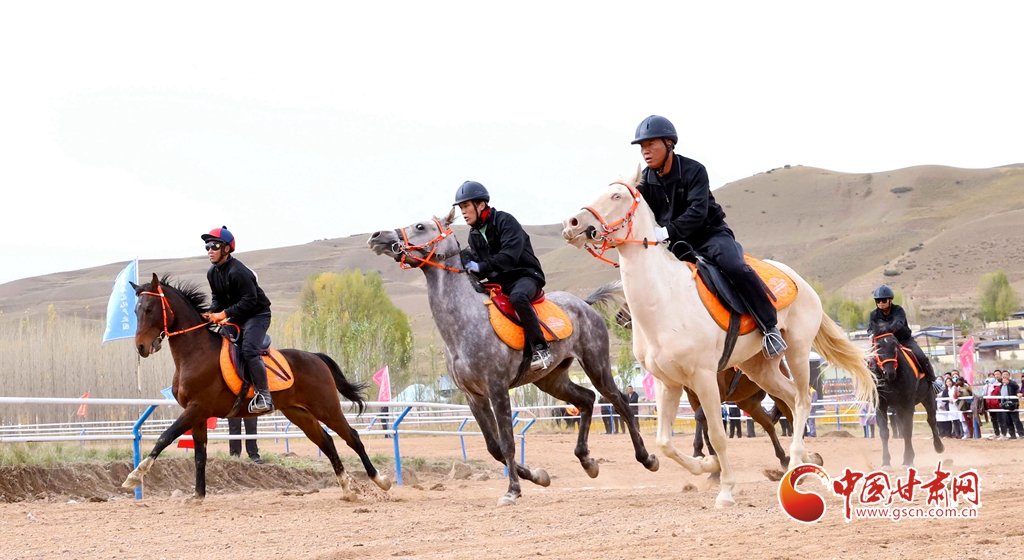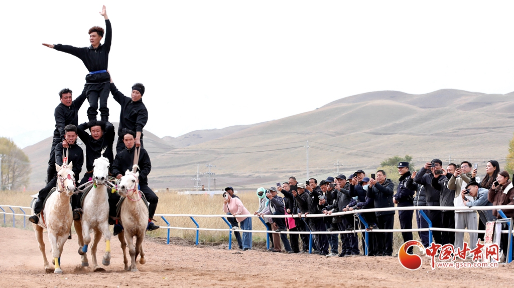 10月14日,山丹縣的一場賽馬會上,騎手們正策馬揚鞭,為游客展示多項馬術(shù)項目。山丹縣毗鄰祁連山自然保護區(qū)和山丹軍馬場,坐擁優(yōu)質(zhì)草場資源,養(yǎng)馬歷史逾兩千年,馬文化底蘊深厚,產(chǎn)業(yè)基礎(chǔ)扎實。近年來,當?shù)貒@馬文化主題,建設(shè)了賽馬場、觀光馬道、育馬基地等設(shè)施,致力于為游客與馬術(shù)愛好者打造一個獨具特色的馬文化體驗地。