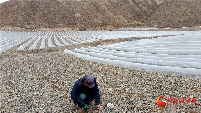 3月18日,城關(guān)區(qū)青白石街道水源村村民正在播種白蘭瓜