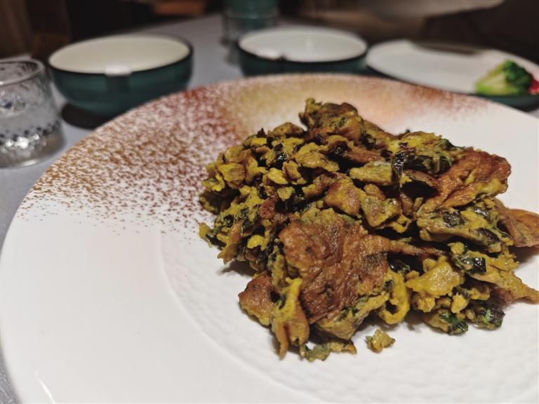 在和家和大酒店,春季限定菜單格外吸睛:頭茬香椿炒雞蛋、丁香魚拌苜蓿芽、豌豆湯煮豌豆苗、油燜鮮春筍、咬春蔬菜團(tuán)等經(jīng)典與創(chuàng)意春菜一應(yīng)俱全。
