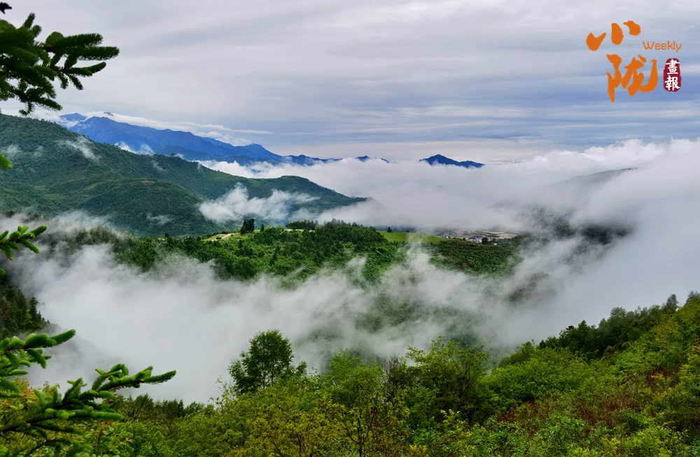 雨后,近處的山巒,青翠欲滴,山間云霧繚繞,如同一條條白色的絲帶,纏繞在山腰間,時(shí)而聚攏,時(shí)而散開(kāi),時(shí)而漫過(guò)山頂,讓遠(yuǎn)山如海中仙島。