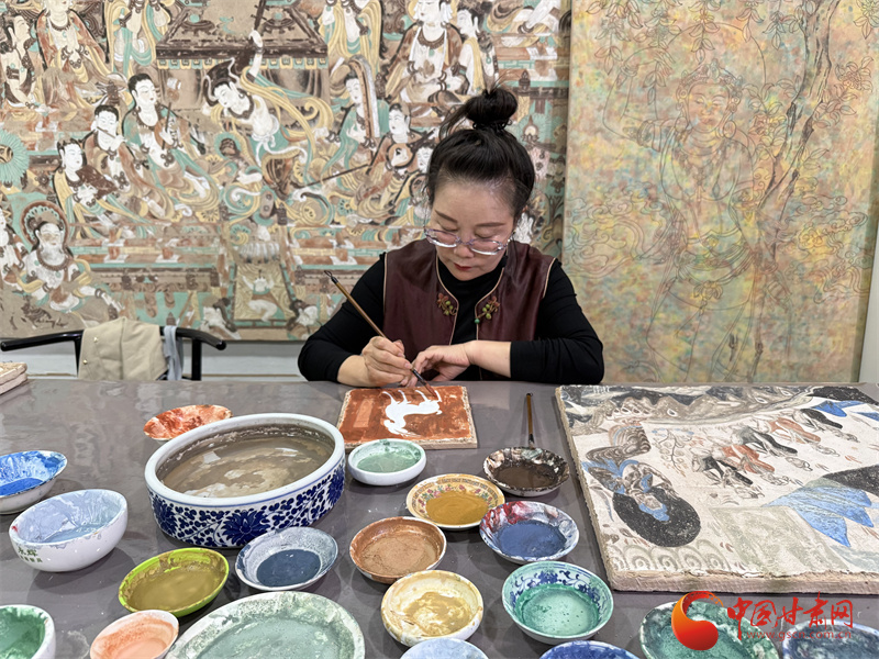 10月31日,由中央網(wǎng)信辦網(wǎng)絡(luò)傳播局、國家文物局政策法規(guī)司指導,中國互聯(lián)網(wǎng)發(fā)展基金會特別支持,甘肅省委網(wǎng)信辦、省文物局主辦,張掖、嘉峪關(guān)、酒泉市委網(wǎng)信辦與敦煌研究院、中國甘肅網(wǎng)、鳳凰網(wǎng)甘肅頻道共同承辦的“何以中國|壁畫里的中國·當AI遇見小飛天”網(wǎng)絡(luò)主題宣傳活動采訪了敦煌石粉彩繪技藝的非遺傳承人王亞林。