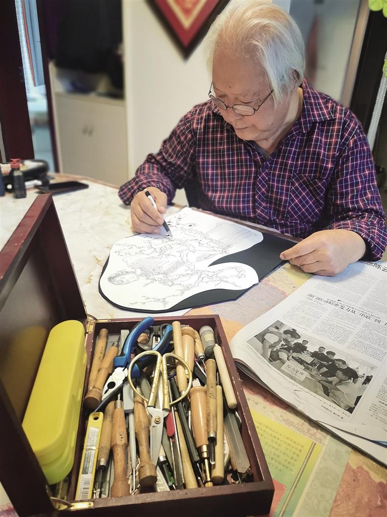 談到創(chuàng)作過(guò)程,他眼神中閃爍著匠人的嚴(yán)謹(jǐn)光芒:“剪一個(gè)好作品,首先要有一個(gè)構(gòu)思,然后再把它畫(huà)出來(lái),再去動(dòng)剪刀、刻刀各種工具。” 在他這里,剪紙絕非簡(jiǎn)單的“剪花樣”,而是嚴(yán)謹(jǐn)?shù)乃囆g(shù)創(chuàng)作,是“胸有成竹”后的“運(yùn)剪如風(fēng)”。