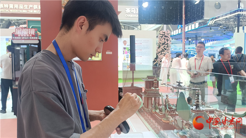 自面塑《觀無量壽經(jīng)變》完美呈現(xiàn)以來,楊凱帶著作品先后參加了敦煌文博會、深圳文博會,這次又以C位出道參加蘭洽會。