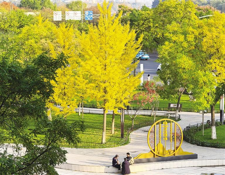 初秋時(shí)分,市民在銀杏樹下拍照打卡