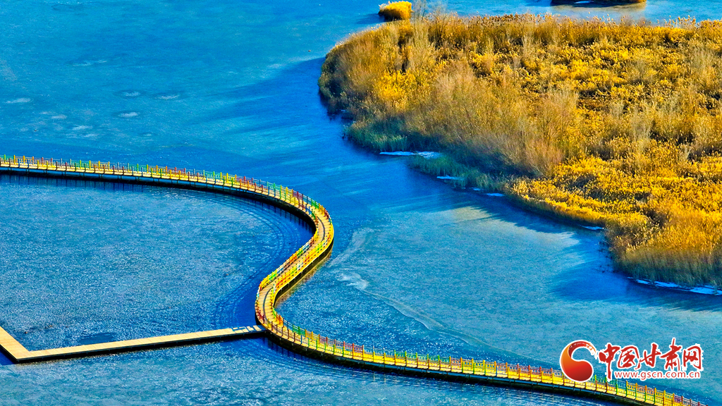 12月4日,張掖市黑河濕地國家級自然保護區(qū)內(nèi),經(jīng)風(fēng)霜浸染的蘆葦與蒲草披上金裝。從高空俯瞰,夕陽下的蘆葦蕩如金色海洋,蘆花隨風(fēng)輕舞,碧水凝冰環(huán)繞其間,宛如一幅鋪展的濕地金畫卷,吸引眾多游客與攝影愛好者前來觀賞拍攝。
