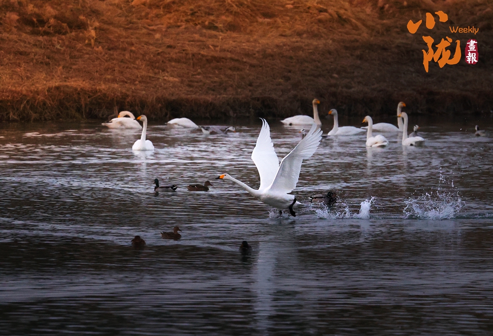 這里聚集了天鵝、赤麻鴨、灰雁等多種水鳥,它們?cè)邳S昏里愜意地游弋,或扎進(jìn)水里捕魚,或相互追逐戲水的畫面,既震撼又溫柔,成為攝影愛好者和游人爭(zhēng)相追逐的“冬日奇景”。