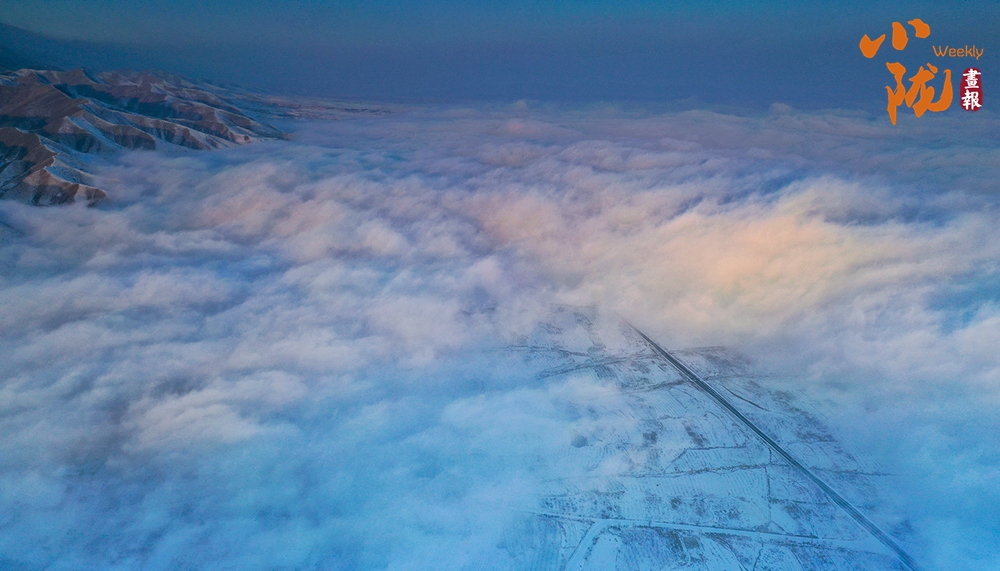 山下的屋舍靜臥于無邊的潔白中,淺藍(lán)天色漸次暈染,蒼灰山脊如墨筆勾勒,山川草木皆成了畫中疏淡的筆意,低訴著悠長的冬韻。