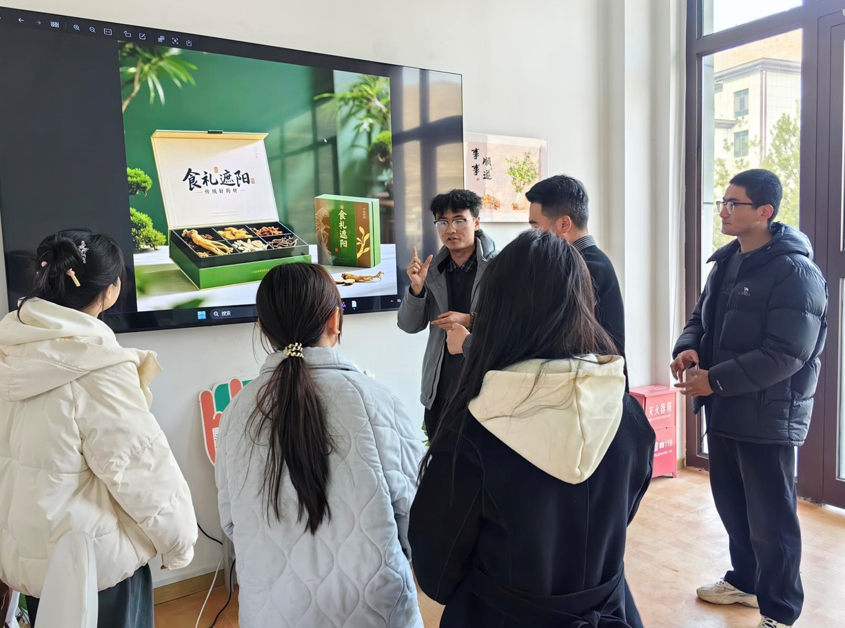 “食禮遮陽(yáng)”宣傳小分隊(duì)成員討論藥材包裝細(xì)節(jié)。中青報(bào)·中青網(wǎng)記者 王豪/攝