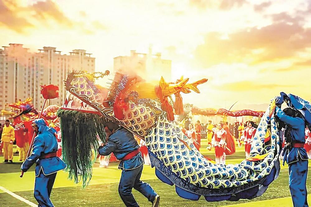 走在民樂縣勞動文化主題廣場上,隱隱聽到遠處傳來鑼鼓聲,起初若有若無,片刻間一陣緊似一陣。循聲望去,彩扇翻飛、花燈搖曳,獅子金紅的鬃毛在人縫里忽隱忽現(xiàn)——“哦,是一支社火隊!”人群中傳來這樣的歡呼。