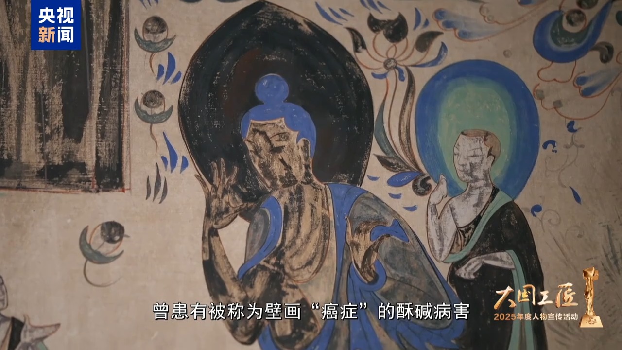 2025年大國工匠年度人物、敦煌研究院壁畫保護修復(fù)專家 樊再軒:這里,是我守護一生的地方——敦煌莫高窟,它是大漠深處矗立千年的文明圣殿。45年前,我開始修復(fù)敦煌壁畫,總感覺是在和古代的畫工們進行著跨越時空的交流。這些壁畫,它是會呼吸的,它是有生命的。然而,壁畫當中潛藏著很多的可溶鹽,在洞窟里受到溫濕度的影響,反復(fù)地潮解、結(jié)晶,導(dǎo)致壁畫膨脹、收縮。就像一雙雙無形的手,在一點一點撕裂著壁畫的肌膚,這就是壁畫“癌癥”。我暗下決心:要讓這千年瑰寶在時光的長河里留存得久一點,更久一點。
