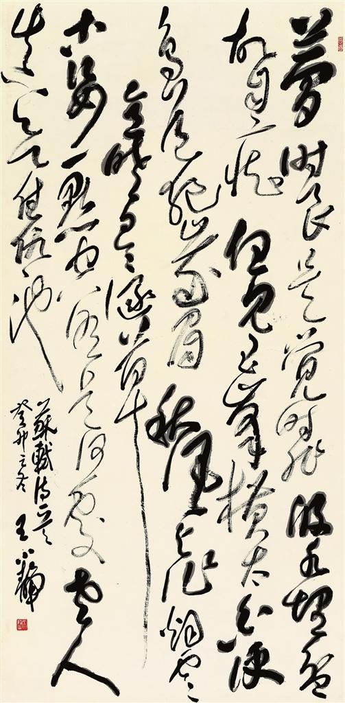 隴南有著得天獨(dú)厚的碑學(xué)資源,以《西狹頌》為代表的碑刻見證了隴南金石碑學(xué)的延續(xù)。王小靜書法中的篆隸素養(yǎng)即來自于此,她大量臨習(xí)金文、漢碑,取其古拙之趣,將碑學(xué)強(qiáng)調(diào)的線條運(yùn)用在草書中,涵養(yǎng)了草書的內(nèi)韻,在澎湃開張的草書體態(tài)中顯示出了厚重的體積感和塊面感,一張一弛之間將一種真正源于內(nèi)心對草書的熱愛凝結(jié)于紙面。從內(nèi)心情感對草書的萌動到草書創(chuàng)作進(jìn)入自由抒情階段,這是一次漫長的學(xué)習(xí)之旅。王小靜一直在這條路上奮進(jìn),至今仍然堅持臨摹古代經(jīng)典,尤其注重把對篆隸的臨摹推向深入。她認(rèn)為,不斷深入古代經(jīng)典,從傳統(tǒng)中尋找個人的創(chuàng)新空間,才是有價值的創(chuàng)新。