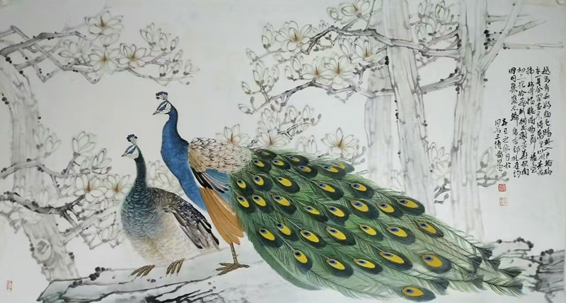2009年,一幅工筆《粉蝶戲牡丹》的成功售出,成為王自強藝術(shù)生涯的轉(zhuǎn)折點。這幅細膩靈動的作品不僅帶來經(jīng)濟收益,更讓他意識到傳統(tǒng)工筆畫的市場潛力。此后十年間,他創(chuàng)作的《孔雀牡丹》等工筆畫作屢獲佳績,八尺整張作品曾拍出2萬余元高價。但真正讓他在書法界嶄露頭角的,是對漢隸的深入探索。
