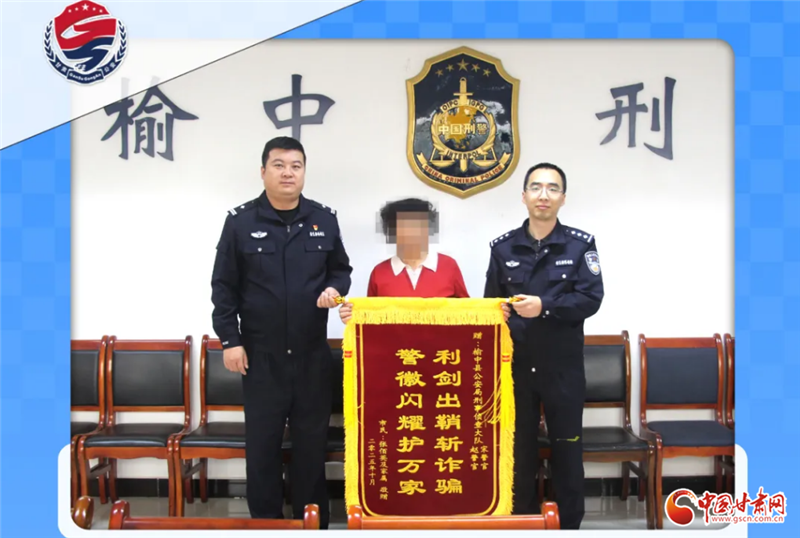 中國甘肅網(wǎng)11月3日訊(西北角·中國甘肅網(wǎng)記者 程?。┙?,蘭州市的張女士將一面印有“利劍出鞘斬詐騙 警徽閃耀護(hù)萬家”的錦旗,送到了榆中縣公安局刑警大隊(duì)辦案民警手中。