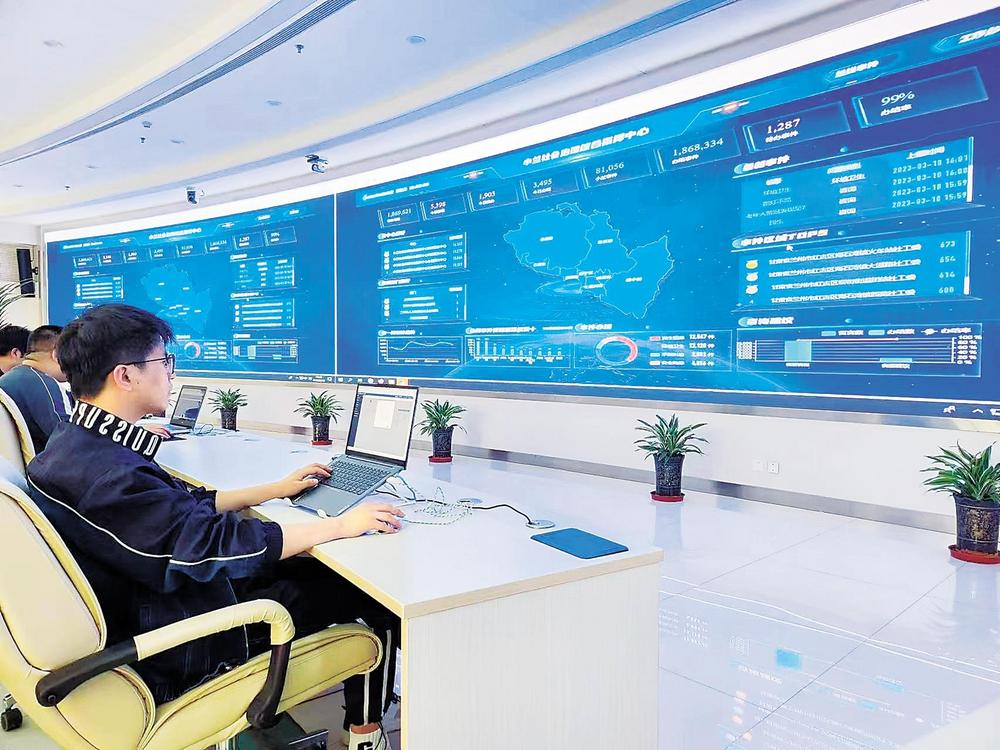 蘭州市社會治安綜合治理中心工作人員實時關注“民情地圖·小蘭善治”平臺。
