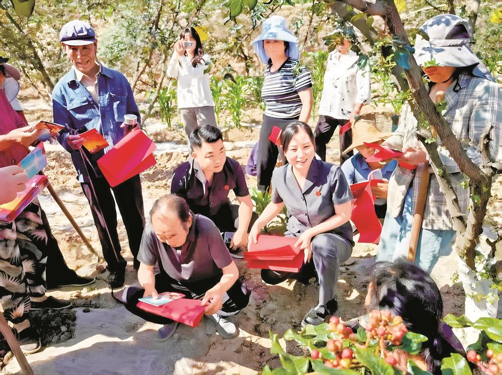 安化法庭干警走進(jìn)花椒種植園,與村民圍坐交流,現(xiàn)場(chǎng)答疑解惑。 武都區(qū)法院供圖