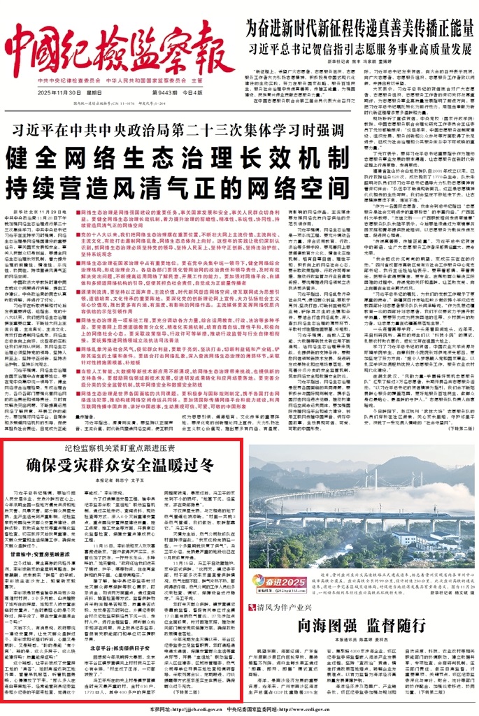 《中國紀(jì)檢監(jiān)察報》2025年11月30日(第1版)