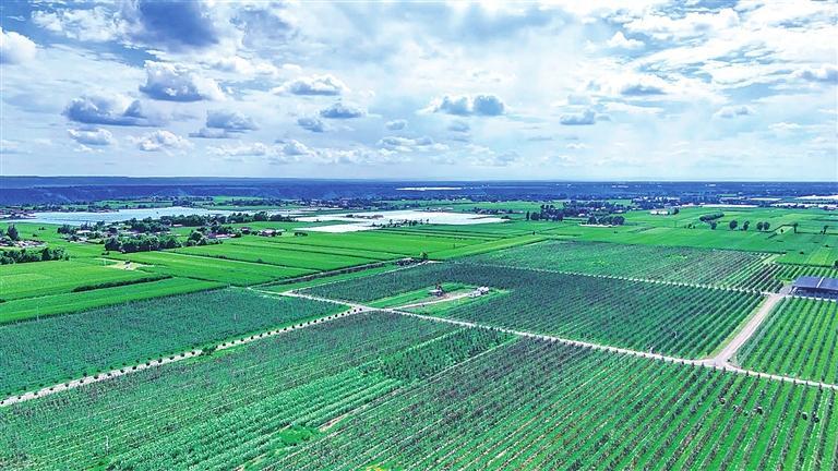 航拍涇川縣豐臺鎮(zhèn)豐臺墩村矮砧密植優(yōu)質(zhì)蘋果示范園。