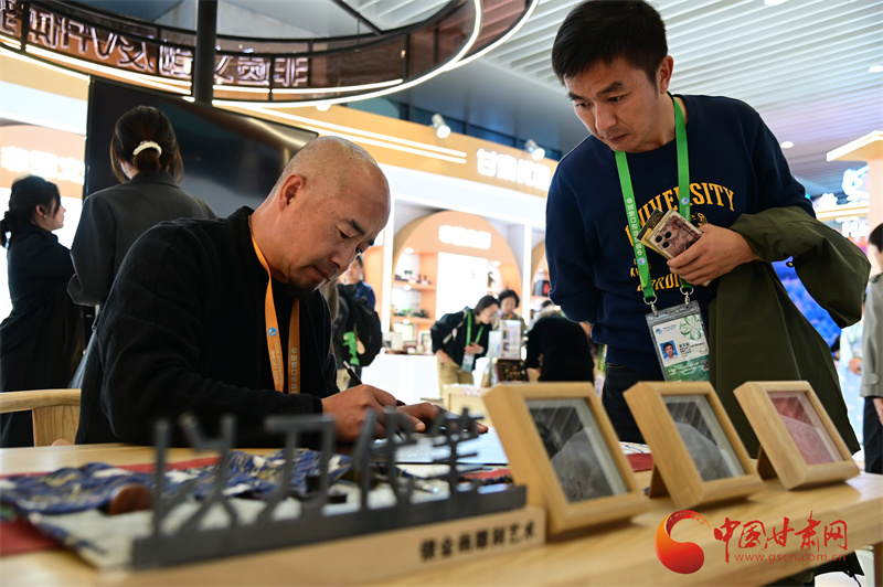 展廳里,除了靜態(tài)展示的鍥金畫(huà),還有手工藝人現(xiàn)場(chǎng)演示刻刀的用法——觀眾能看著鋼刀在底板上游走,看線條一點(diǎn)點(diǎn)成型,感受每一刀背后的細(xì)致與耐心。旁邊的VR體驗(yàn)區(qū),通過(guò)折幕投影帶觀眾“走進(jìn)”莫高窟,也讓大家更懂張兆武筆下敦煌元素的由來(lái);“美食薈”里的蘭州牛肉面、“文藝薈”里的特色工藝,則從旁襯托著這門(mén)非遺手藝的文化底色。