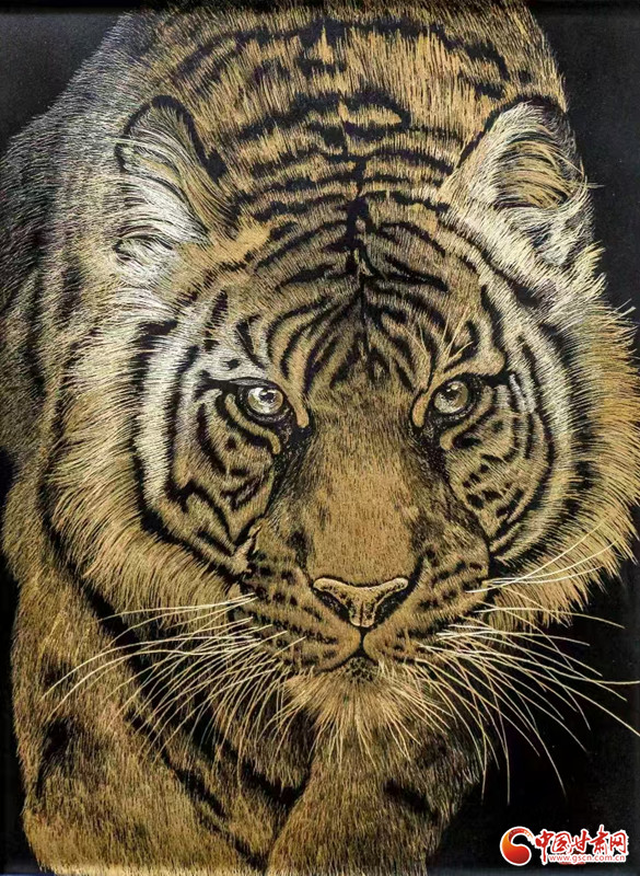 談起自己堅(jiān)守多年的手藝,張兆武曾這樣向大家解釋?zhuān)?ldquo;很多人好奇‘鍥金畫(huà)’到底是怎么做的,其實(shí)核心就是‘以刀為筆’。我們用特制的鋼刀,在處理好的底板上一點(diǎn)一點(diǎn)刻,要經(jīng)過(guò)‘繪、鍥、爍、凝’四步,才能把金屬的亮澤和線條的勁兒揉到一起。”這門(mén)手藝的根能追溯到青銅器時(shí)期,過(guò)去常用在佛教法器、宮廷裝飾上,和敦煌石窟藝術(shù)的輝煌年代一路相伴,藏著“尊貴”與“長(zhǎng)久”的意涵。