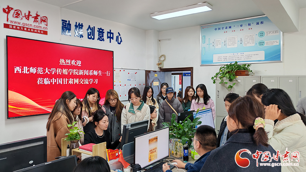 活動(dòng)中,西北師范大學(xué)傳媒學(xué)院師生一行參觀了中國(guó)甘肅網(wǎng)的辦公區(qū)域,詳細(xì)了解了網(wǎng)站的發(fā)展歷程與建設(shè)成果。通過(guò)觀看中國(guó)甘肅網(wǎng)宣傳片,師生們對(duì)網(wǎng)站的媒體融合發(fā)展情況有了更為直觀的認(rèn)識(shí)。此次參觀不僅拉近了學(xué)子與媒體實(shí)踐的距離,也為他們提供了將課堂所學(xué)與行業(yè)實(shí)際相結(jié)合的重要契機(jī)。