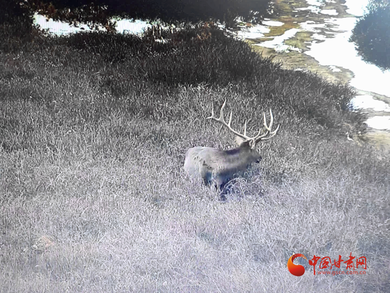 中國甘肅網(wǎng)11月24日訊(西北角·中國甘肅網(wǎng)記者 張慧雅 通訊員 龔曉玲 吳國虎)近日,祁連山管護中心東大山自然保護站危路溝資源管護站通過視頻監(jiān)控,清晰捕捉到一只雄性甘肅馬鹿在祁連山草甸間悠然活動的畫面。畫面中,甘肅馬鹿體型壯碩,鹿角分叉繁復。