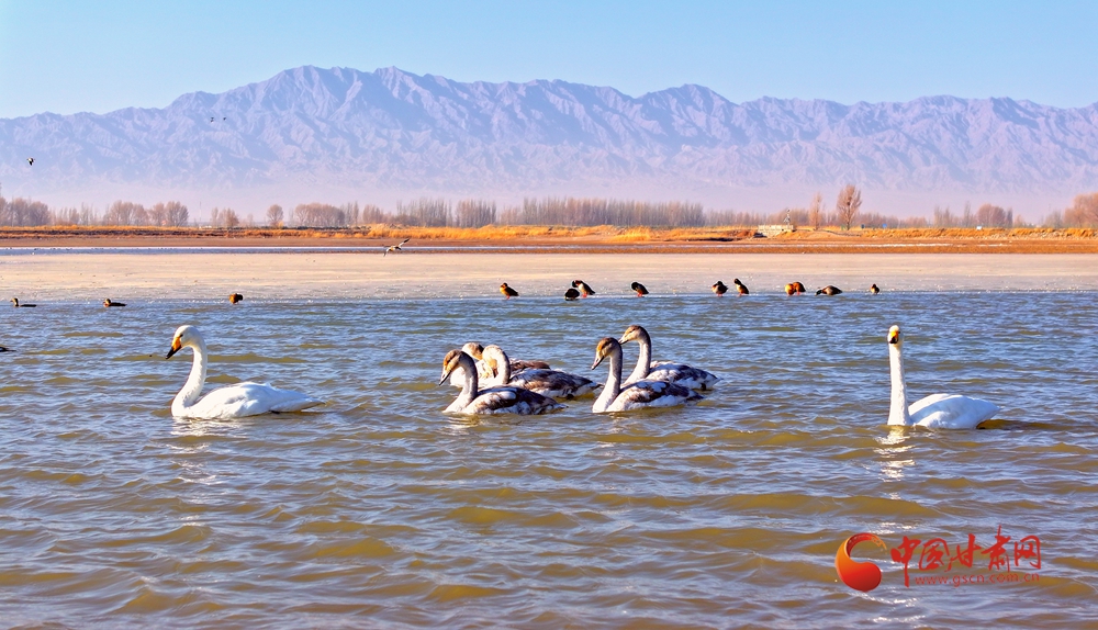 11月24日,一場(chǎng)瑞雪過后,臨澤大地銀裝素裹。朱紅殿宇與皚皚祁連山相映成趣,繪就獨(dú)特意境。雙泉湖雖覆薄冰,卻有成群天鵝游弋,潔白的身影在冰面與雪色間穿梭,為靜謐的冬日注入生機(jī)。