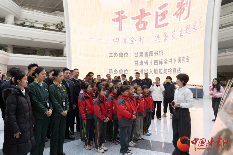 中國甘肅網(wǎng)1月7日訊 1月6日,在第六個中國人民警察節(jié)即將來臨之際,蘭州中川國際機場T3航站樓航空樞紐內(nèi)墨香氤氳,由甘肅省圖書館、甘肅省《四庫全書》研究會與蘭州出入境邊防檢查站共同承辦的“千古巨制——《四庫全書》進警營”活動如期舉辦。蘭州出入境邊防檢查站全體民警與各友鄰單位代表齊聚于此,與文溯閣本《四庫全書》展開一場跨越時空的文化對話。
