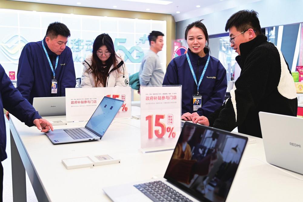 電腦等3C數(shù)碼產(chǎn)品享15%國(guó)補(bǔ)補(bǔ)貼,吸引眾多消費(fèi)者到店咨詢選購(gòu)。 本版圖片由新甘肅·甘肅經(jīng)濟(jì)日?qǐng)?bào)記者瞿娟攝