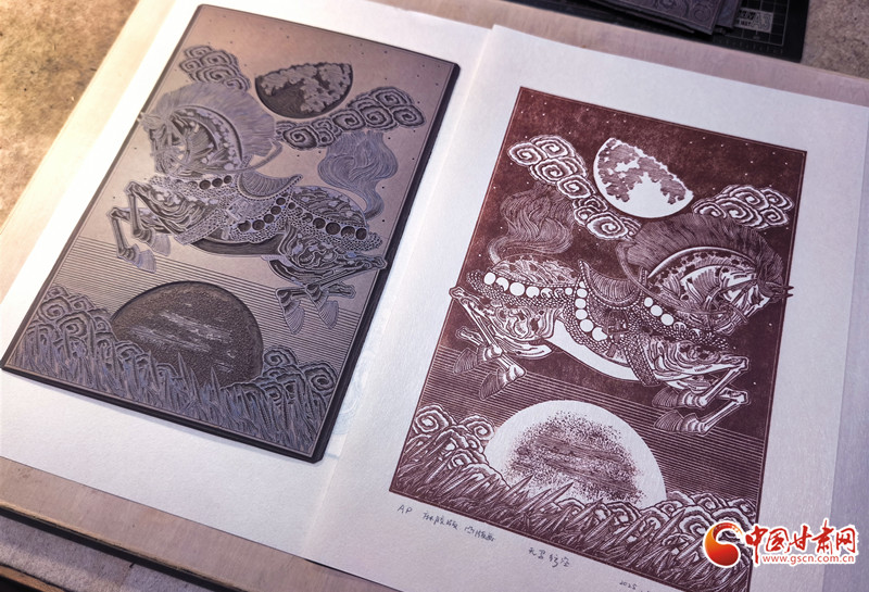 從彩陶紋樣到飛天神韻,從黃河之濱到絲路駝鈴,當(dāng)傳統(tǒng)技藝遇上現(xiàn)代思維,當(dāng)?shù)赜蛭幕鲎踩蛞曇埃w寧的刀刻人生,既是個(gè)人對(duì)藝術(shù)的執(zhí)著追求,更是一位非遺傳承人對(duì)文化根脈的深情守護(hù)。正如他所說(shuō):“版畫不是冰冷的木板,而是有溫度的文化記憶。”在這方寸之間的刻板上,甘肅的故事正被重新書寫,非遺傳承也在時(shí)代語(yǔ)境下實(shí)現(xiàn)著創(chuàng)造性轉(zhuǎn)化,綻放出更加絢爛的光彩。