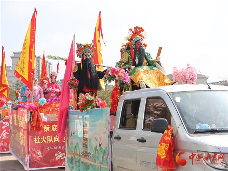 展演現(xiàn)場(chǎng)高潮迭起、好戲連臺(tái)。彩龍騰空而起,蜿蜒盤旋、氣勢(shì)磅礴,追珠戲耍、靈動(dòng)非凡;雄獅騰躍翻轉(zhuǎn),時(shí)而威風(fēng)凜凜,時(shí)而俏皮可愛,剛勁舞姿引得陣陣喝彩。高臺(tái)社火驚艷四座,人物扮相惟妙惟肖,造型精巧別致、技藝驚險(xiǎn)絕倫,盡顯傳統(tǒng)民俗文化精髓。秧歌隊(duì)舞步輕盈、熱情洋溢,腰鼓隊(duì)節(jié)奏鏗鏘、氣勢(shì)如虹;彩車絢麗奪目、跑旱船詼諧有趣,五路財(cái)神喜慶亮相,招財(cái)納福、寓意吉祥,各類民俗節(jié)目輪番上陣,讓人目不暇接。原汁原味的鄉(xiāng)土韻味與新時(shí)代創(chuàng)意融合,讓古老社火煥發(fā)出別樣生機(jī)。
