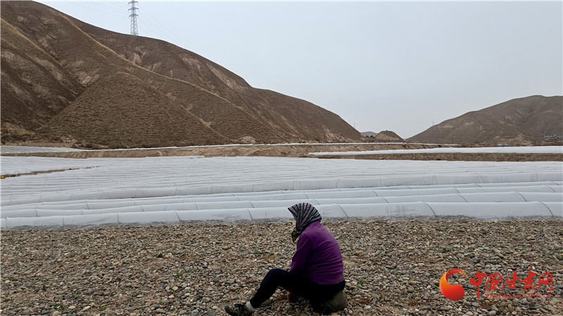 3月18日,城關(guān)區(qū)青白石街道水源村村民在沙石地種白蘭瓜