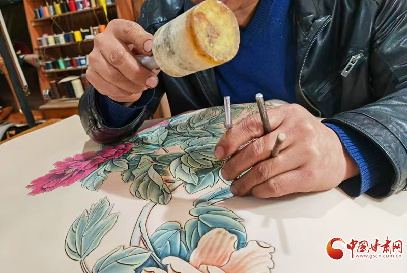 在高重民的眾多作品中,紫斑牡丹系列掛畫(huà)是他的心頭所愛(ài)。紫斑牡丹是中原牡丹的起源,在臨洮有著深厚的自然與人文積淀,而牡丹作為國(guó)花,更承載著中國(guó)人對(duì)富貴、圓滿、繁榮的美好寄寓。“帶著對(duì)家鄉(xiāng)文化的熱愛(ài),還有對(duì)牡丹情懷的敬重,我創(chuàng)作了這一系列作品,希望用皮雕技藝,把這份根植于故土的美好長(zhǎng)久留存。”高重民談及這份作品,滿是深情。
