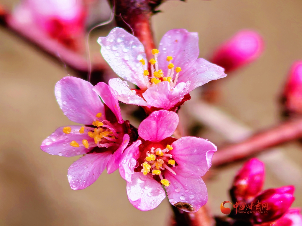 蒙古扁桃花開(kāi) 祁連春意漸濃