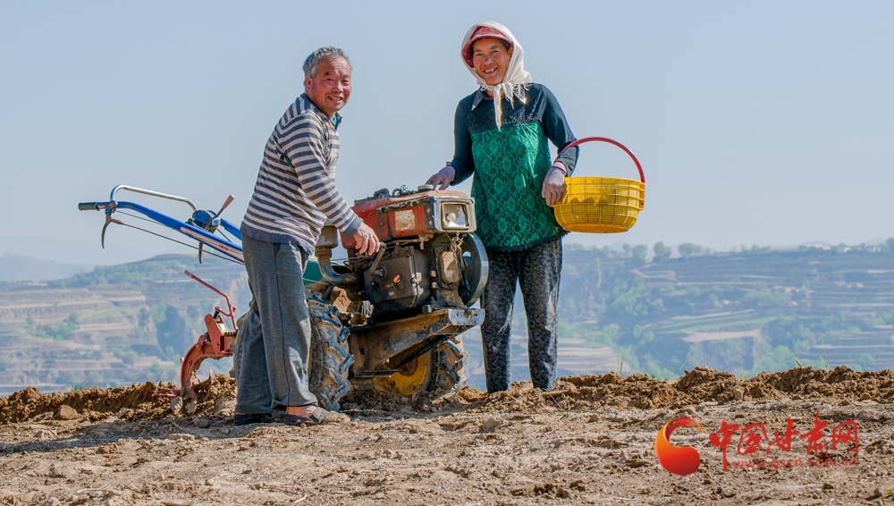 春日,走進(jìn)定西臨洮的田間地頭,一壟壟覆膜蜿蜒如銀色絲帶,在暖陽(yáng)下泛起粼粼波光。洮河水畔,杏花初綻,村民們正彎腰點(diǎn)種、培土壓膜。新翻的泥土氣息混著花香彌漫田間。農(nóng)機(jī)轟鳴處,白膜與藍(lán)天相映,勾勒出黃土高原上最動(dòng)人的春耕畫卷。