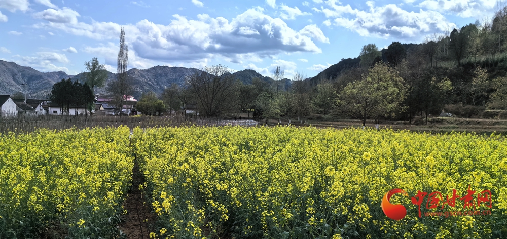連翹花肆意綻放,明黃花海漫過山巒,將春日的蓬勃生機盡情鋪展