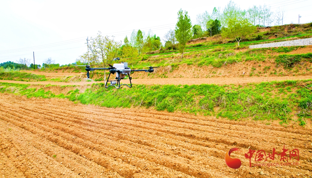 植保無人機在翻耕后的田壟上空作業(yè),高效完成播種前的田間準(zhǔn)備