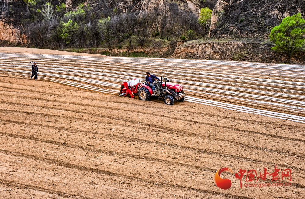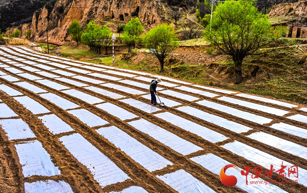 田壟間覆膜如織,農(nóng)人俯身勞作,黃土地上滿是希望的生機(jī)