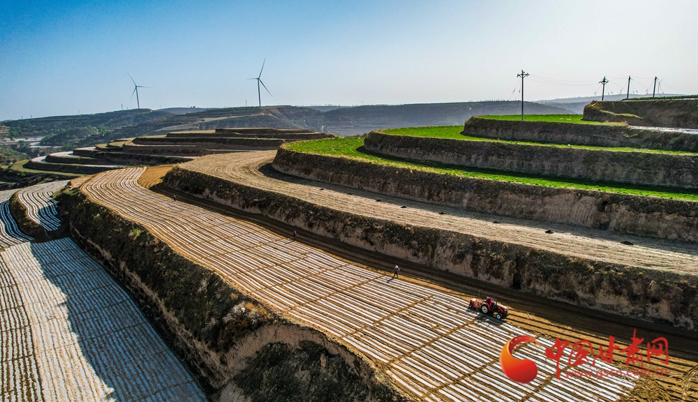 梯田春耕正當(dāng)時(shí),農(nóng)機(jī)馳騁覆膜忙