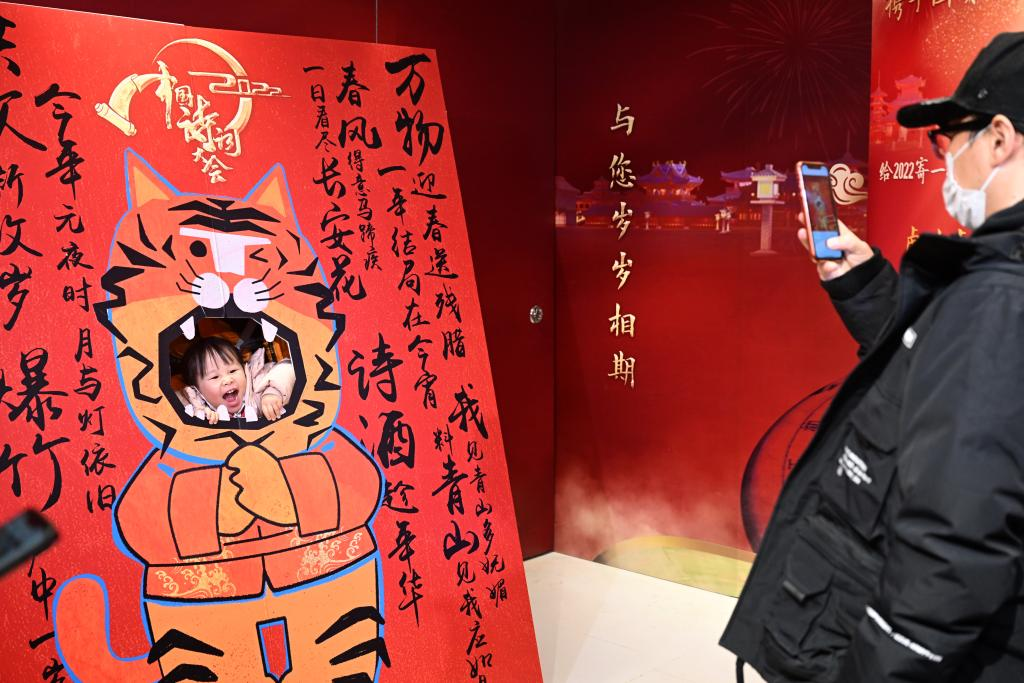 春節(jié)假期,作為文化節(jié)目《2022中國(guó)詩(shī)詞大會(huì)》的線下活動(dòng),詩(shī)詞市集在北京國(guó)貿(mào)商城舉行。活動(dòng)邀請(qǐng)市民寫下一句詩(shī),給2022年寄出一張?jiān)娫~明信片,帶動(dòng)詩(shī)歌熱潮,推動(dòng)詩(shī)詞文化走入百姓家。