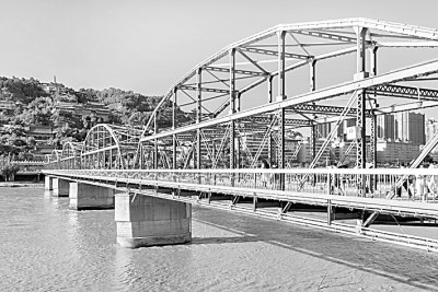 以百年時(shí)間看黃河,《黃河中國》彰顯黃河古文明之上崛起的現(xiàn)代文明。在書中我特意寫了三座百年黃河鐵橋,它們分別是蘭州黃河鐵橋、鄭州平漢鐵路黃河橋和濟(jì)南濼口黃河鐵路橋。一百年放置在歷史長河里不算長,卻是一個(gè)較為合適的觀照近現(xiàn)代中國發(fā)展的時(shí)間點(diǎn)。從擺渡、繩渡到石橋、木橋、浮橋、鐵路橋、公路橋,橋梁建筑史的發(fā)展足以證明人類社會的進(jìn)步。黃河上最初修建鐵橋的歷史在晚清末年,正是中華民族處于內(nèi)憂外患之際,光緒二十六年(1900)清政府決定修建平漢黃河鐵路橋,這是黃河上的第一座鋼鐵建筑,然而在1938年抗戰(zhàn)烽火中,為阻擋日軍進(jìn)攻,被炸毀了,現(xiàn)在只剩下5孔橋墩。以5孔橋墩存在的黃河第一座鐵橋,象征著黃河上現(xiàn)代工業(yè)文明的興起與民族深深的精神創(chuàng)傷。如今80多年過去了,鄭州地段已經(jīng)修建了十余座黃河橋,每一座都很現(xiàn)代很漂亮。自新中國成立以來,黃河安瀾75年,從戰(zhàn)火紛飛到國泰民安,黃河是國家昌盛、民眾幸福的最好見證者。