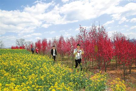 郭坪的麗桃花多為紅色,那紅,于深紅中又透著一種清麗的粉,使繁盛的花朵,飽滿中又呈現(xiàn)出一種吹彈可破的輕盈,而沁人心脾的花香,又使人忍不住就想把臉埋在繁花間,把花香全都嗅進五臟六腑。此時,花株猶如無數(shù)把紅傘,傘下,五顏六色的衣裳與花樹相映成趣。樹上的花對著人笑,地上的人對著花笑。“去年今日此門中,人面桃花相映紅。人面不知何處去,桃花依舊笑春風(fēng)。”崔護的詩也不知不覺從腦海里跳將出來。傳說詩人崔護的這首《題都城南莊》寫的是,他進京考進士落第,一個人悵然走到京城南郊。走得口渴到一戶人家討水,一美麗女子站在庭院的桃花下,嬌羞地把一瓢水遞給了他,那女子的美貌驚艷了詩人的眼睛。第二年春天崔護復(fù)來南莊,然而那座庭院里,桃花依然如故,而樹下卻不見了佳人的芳蹤,于是留下此詩。面對花海,也許你會突發(fā)奇想,如果崔護能在詩里復(fù)活,想必他一定也會來郭坪的麗桃花海走一遭,那么這首詩一定會是另外的意境了。因為此時的花樹下,滿是顧盼生輝的佳人,也不知崔護要題詩給哪一位女子了。